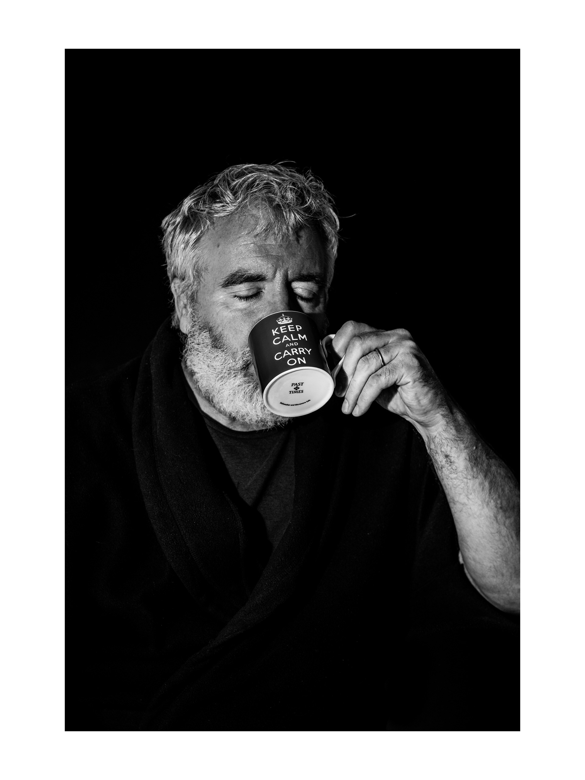 What I hope to show with this work, as I am diagnosed with bipolar, is how the condition can express itself. I have sought to explain this with an allegory of the tea drinking institution that is a British way of life. The tea drinking stands in for the medication I have to take. The collection of mugs and my ‘mugshots’ detail the effects of such an intervention. The chemistry is not perfect but a damn sight better than say twenty years ago and in my case I’ve been lucky to find tablets that sometimes work. The highs and lows of bipolar and the psychosis I experience are being managed. I have learned not to say what bazaar thoughts I’m having because experience has taught me they are ‘bazaar’. Coming clean means more medication and in my series you will see that what I do take wears me out. Nevertheless I can function. The mugs themselves show the normality around me and hopefully link with the viewers experience of life in general and the fatigue and recuperation we can all relate to.